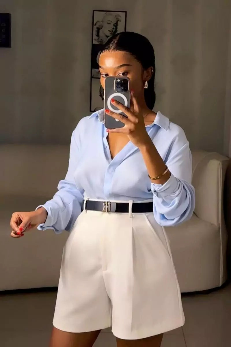 Ensemble chemise bleu ciel+short