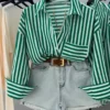 Ensemble chemise verte a rayures blanches+short jean